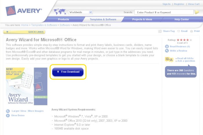 Go online to the following web link and download the Avery Wizard add in to Microsoft Word. It is a free piece of software that has many uses in your business. http://www.avery.com/us/software/how_to_download_averywizard.html product in my office, ... Retrieve Here